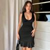 فساتين نسائية خريفية وشتوية جديدة برباط وأكمام طويلة بلون موحد بياقة مربعة ضيقة عالية الخصر بفتحة