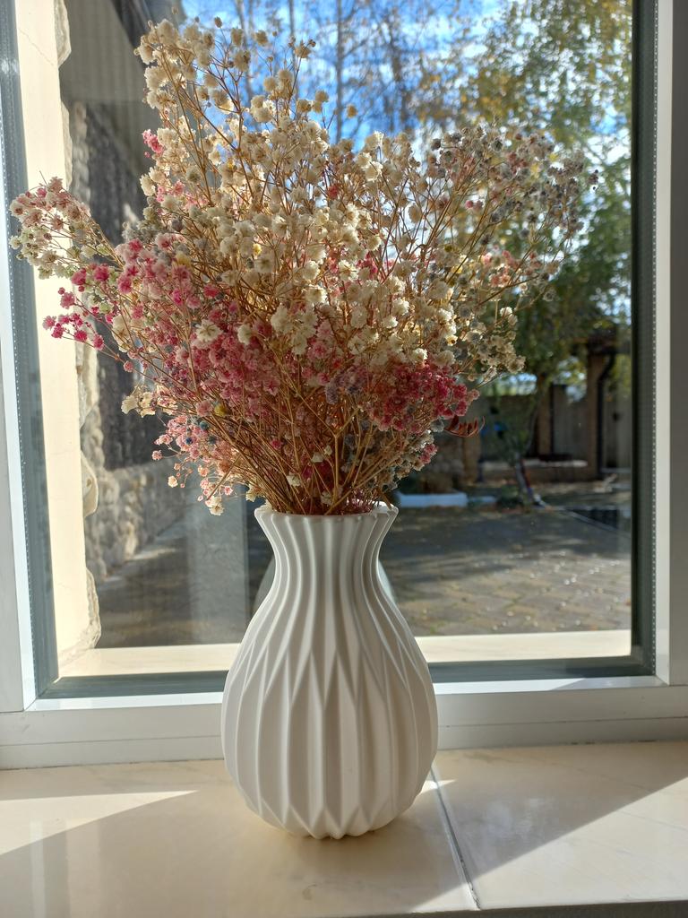 Váza je velmi kvalitní, až na to, že je lehká a rychle padá, nevšimla jsem si, že by byla z plastu, ale jinak dopadla krásně!