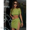 Dámské kostýmy pletené sukně s krátkým rukávem sexy top 2 kusy sada boků dlouhé sukně s dlouhými sukněmi, dámský letní oblek