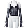 Cyber Sexy Summer Halter Tops Tmavé Y2k Punk Mesh Průsvitná trička Dámské Šněrovací Techwear Černé Patchwork Split Clothes 20694