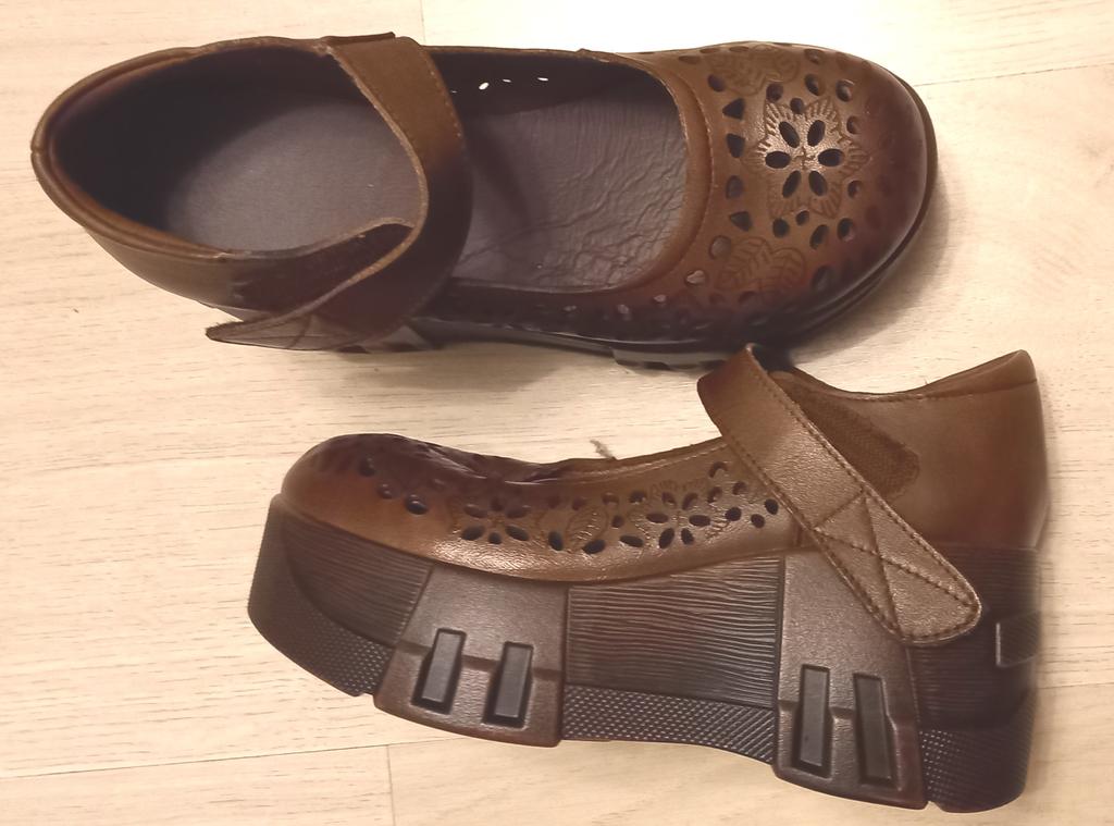 Johnature Boty na platformě s kulatou špičkou se silnou podrážkou Dámské sandály z pravé kůže Vintage Comfort s dutým klínem