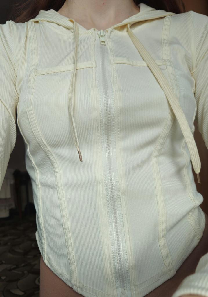 Ne úplně jako na fotce, stahovací šňůrka v kapuci je taková, zip se občas zadře Velmi lehké, ideální na letní večer