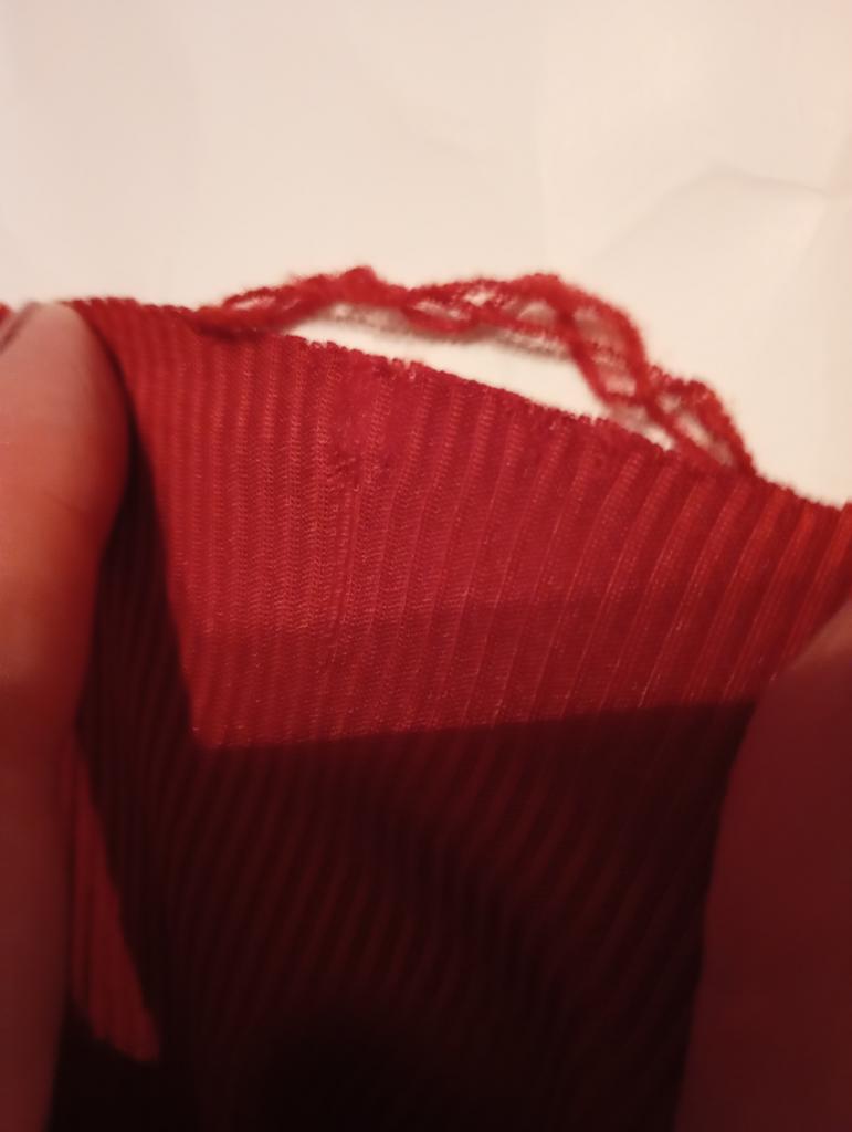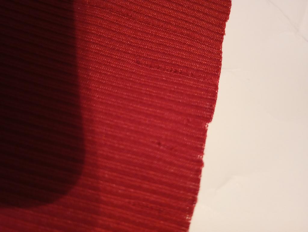 Okraje jsou zcela neobšité, jen ustřižené a všechno, nitě se začínají trochu párat