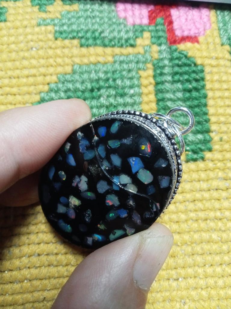Natural Ethiopian Opal Gemstone 925 Sterling Silver Jewelry Pendant 2.17" Y7i40