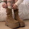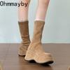 fashion Platform Women Western Cowgirl Boots Fashion Elegant Slip On Shoes Square Heel Women's Morder Mid Calf Booties