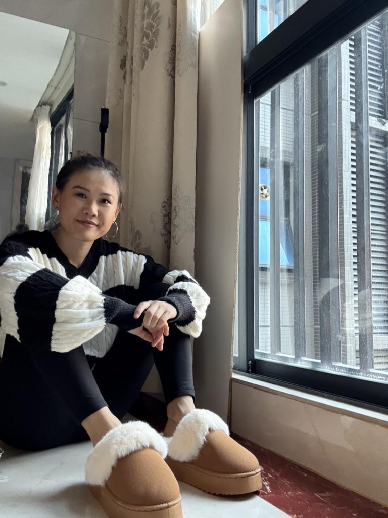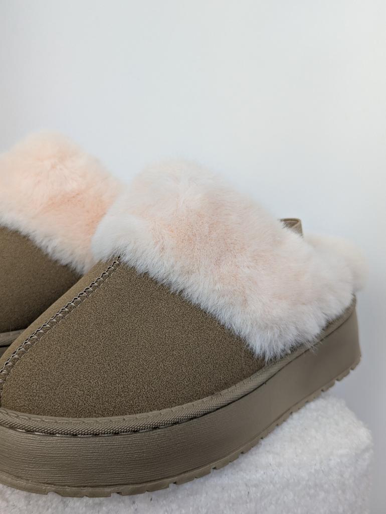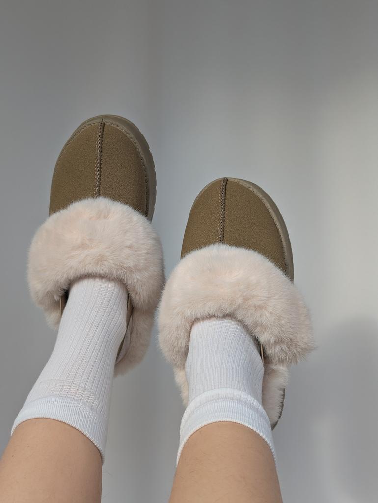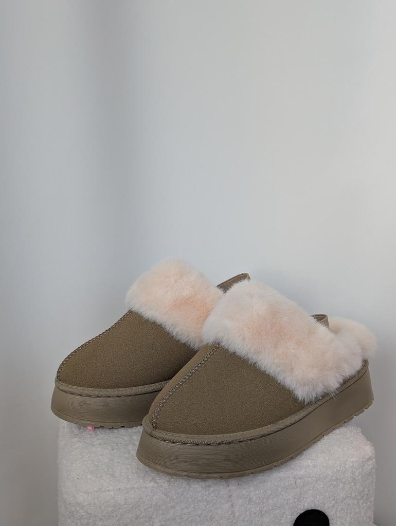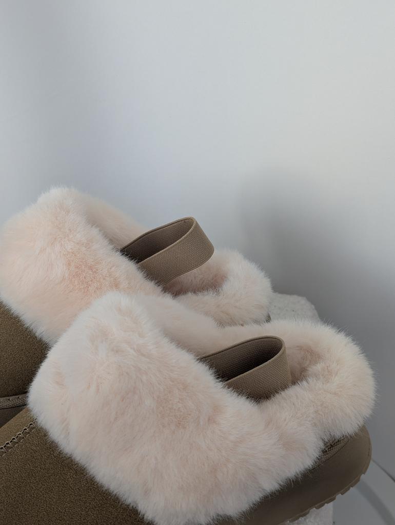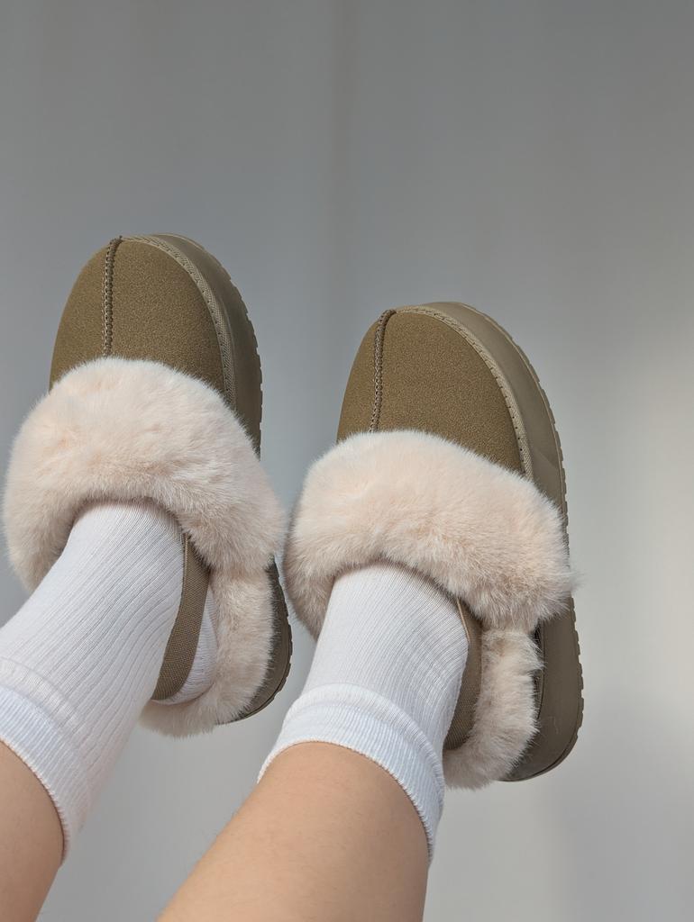 Trendy polo-ugg kozačky, prostě super roztomilé🩷 Velmi chladivé a teplé chmýří Sedí mi na velikost 37,5, brala jsem velikost 39 Moje chodidlo je 24,5 cm Nosím je doma, nohy mě nedráždí a cítím se velmi pohodlně, můžete je nosit i venku, ale formát pantoflí je pro mě vhodnější na doma. Vysoká podrážka, uvnitř umělá kožešina. Khaki barva. Vzadu na patě je gumička. Určitě doporučuji ❤️