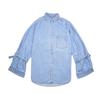 Levis Jednobarevná džínová košile s čtvercovým výstřihem a pufovanými rukávy Dámské košile Modrá A1878-0000