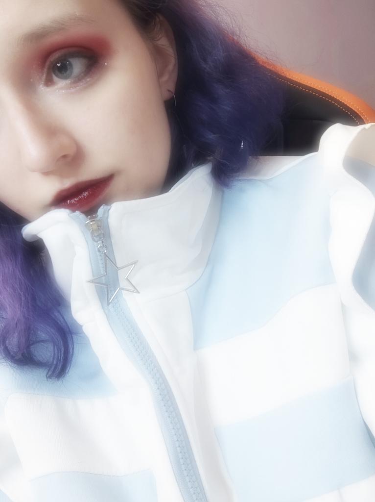 Japonské Streetwear Bundy Ženy Styl Lolita Stojánek Výstřih Zip Oversized Outwear Y2k Topy Volány Kontrastní barva Elegantní kabáty