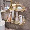 Stainless Steel Golden Bathroom Shelf Punch-Free Wall Hanging Toilet Storage Rack Towel Bar Integrated Organize Storage Holder