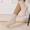 Women BOOTS High Heels Flock Ankle Boots Lady Winter Block Clear Heels Sock Short Booties Transparent Apricot Prom Shoes 2024