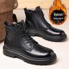 2023 Men's British Plus Velvet Leather Martin Boots - Mid-Cut, Warm, Fashionable, Trendy, Casual Cotton Footwear
