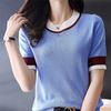 Dámský letní svetr z ledového hedvábí, barevně sladěný, s kulatým výstřihem, krátkým rukávem, volné tričko