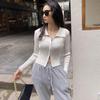 New Autumn Polo Collar Double Zipper Cardigan Long-sleeved T-shirt for Women's Design Short Cucumber Top
