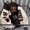 Men's Retro High Street Baseball Jacket: Autumn Fashion, Contrast Stitching, Loose Fit with Letter Embroidery