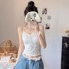 Folded Mesh Spliced Chest Wrapped Vest Short Style Nail Bead Bow Wooden Ear Strap Top for Women