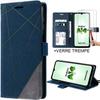 Coque pour Samsung Galaxy A14 5G avec 2 Verres Trempés - Coque Cuir PU Antichoc Bleu Marine-Noir