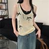 Women's Color-Block Bow Top: Slim Fit Summer Knit with Rolled Hem and Ripped Design