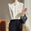 2025 High-End Faux Silk Jacquard Embroidered Top with Chinese Frog Buttons and Stand Collar for Women