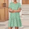 Women's Fashion Casual Round Neck Short Sleeve Leaf Floral Print Dress