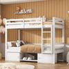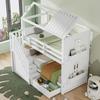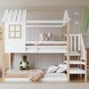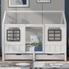 Etagenbett 90x200cm, Kinderbett Rausfallschutz, Leiter, Hausbett Handlauf, Fenster, Einzelbett Lattenrost, Kiefer, Baumhausbett Weiß