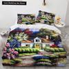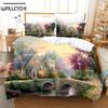 Krásný malovaný povlak na přikrývku a polštáře velikosti King Queen polyesterová ložní souprava pro děti chlapce dívky povlak na přikrývku vzor Dům Strom