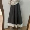 Thick Knitted Half Skirt Autumn/Winter New Popular Style Leaf High Waist Word Large Slimming Splicing Medium Length Long Skirt