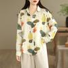DIMANAF 2025 New Plus Size Women Tops Shirts Tees Button Casual Loose Blouse Autumn Print Cotton Long Sleeve
