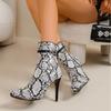 Fashion European and American Sexy Color Block Fashion Boots Pointed Toe Stiletto Heel Women's Boots Side Zipper Snake Pattern