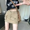 Summer New Women clothes American vintage Three-Dimensional Pocket High Waist A Word Anti-exposure Slimming Short Overalls Skirt