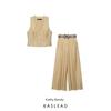 Kaslead New Women clothes Western Style Fashion Gold Buckle Decoration Top Casual Trousers Set