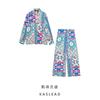 Kaslead New Arrival Women's Fashion Style Fashionable with Side-Slit Print Shirt Pants 8955174 8093173