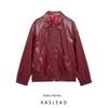 Kaslead New Arrival Women's Clothing Fashion Style Minimalist Casual Retro Polo Collar Solid Color Pu Zipper Jacket