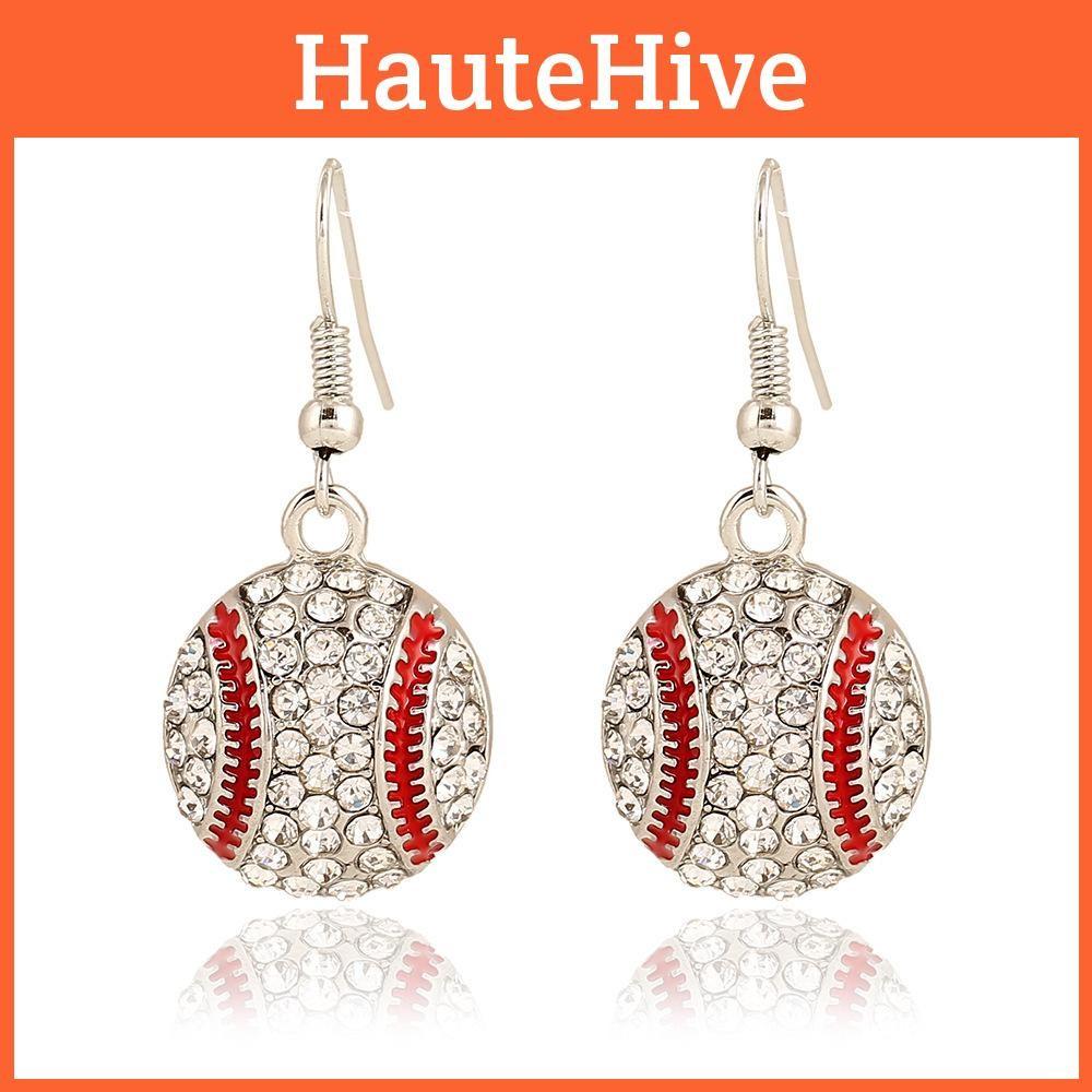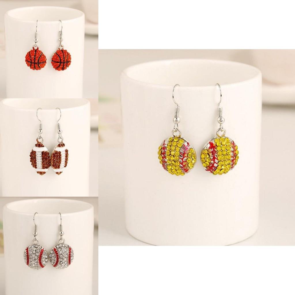 These sporty pendant earrings feature sparkling water accents and are crafted with high-quality materials. They measure approximately 1 inch in length and 0.5 inches in width, showcasing baseball, basketball, football, softball, volleyball, and rugby ball designs. Perfect for casual and athletic outfits, these earrings are ideal for daily wear or sports-themed events. To maintain their shine, wipe clean with a soft cloth regularly.