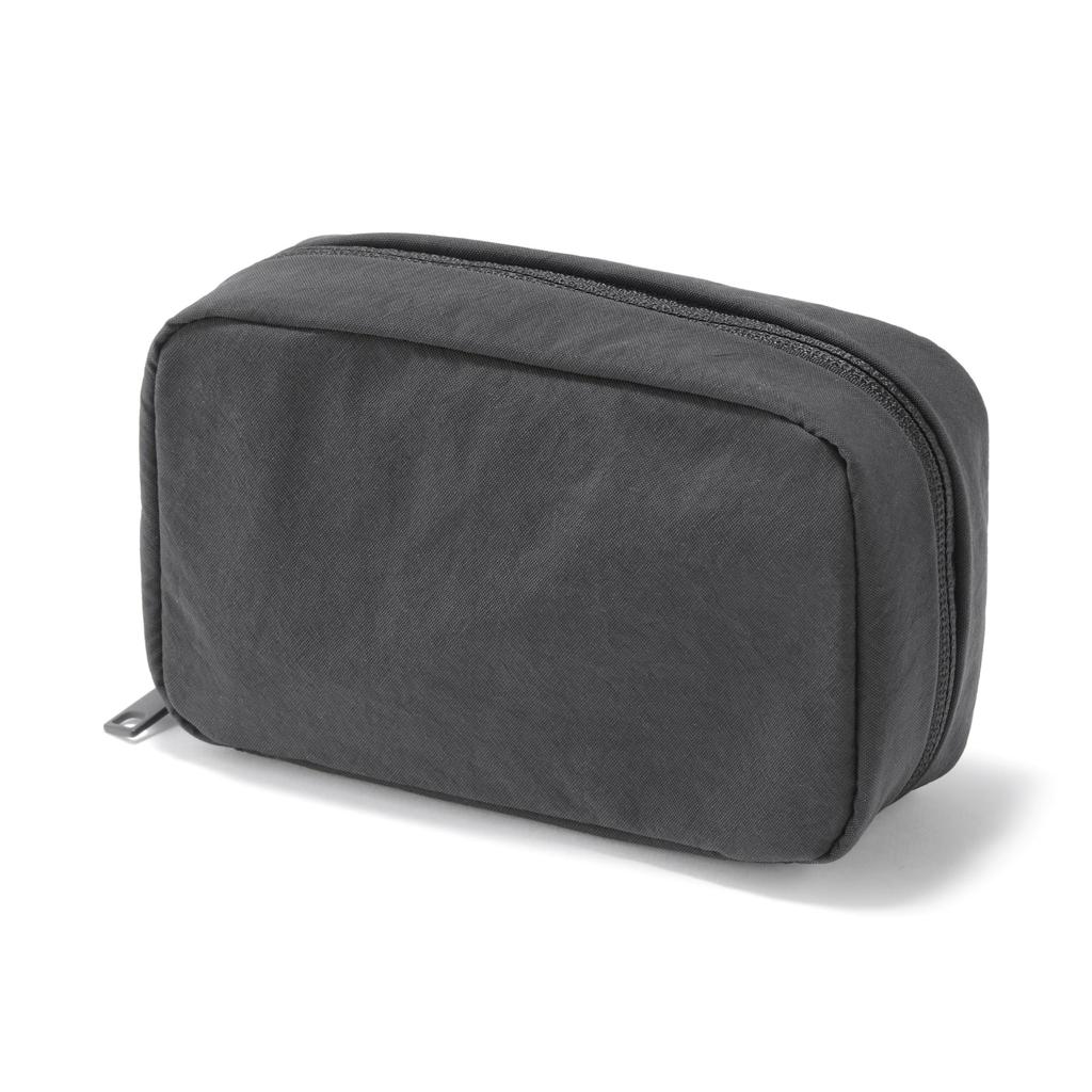 MUJI Wrinkle Nylon Dark Size 15 x 9 x 84473920 Wide-Opening Pouch, Gray, M, Approx. 4.5 cm,