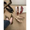 Cowhide French black pointed leather shoes thick heel single shoes women's shallow mouth medium heel women's shoes commuter versatile work shoes