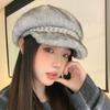 Temperament imitation mink hair chain beret autumn and winter hat women's octagonal hat fleece thickened thermal hat