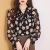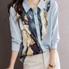 Profession Office Printing Striped Single-breasted Blouse Women New Long Sleeve Turn-down Collar Korean All-match Lady Shirt