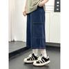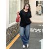 Plus size women clothing [Artistic Denim Skirted Leggings] Retro Casual Summer Chubby Girl High Waist Drape Wide Leg Cropped Pants