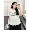 Plus size women clothing [Lace Cool T] Ice Porcelain Cotton Short sleeve T-shirt Chubby Girl Summer 100.00kg Belly Covering Slimming Top