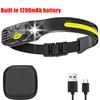 Induction Headlamp COB+LED Head Flashlight Built in Battery USB Rechargeable Outdoor Waterproof Camping Fishing Work Lantern