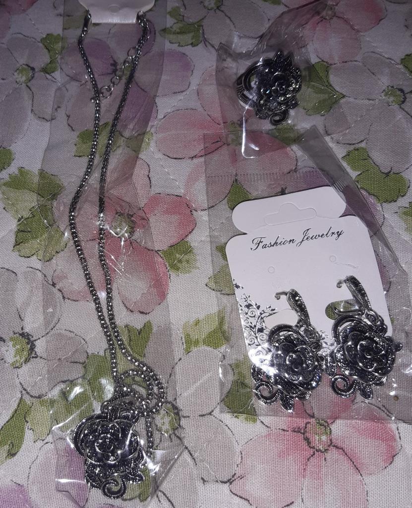 Fashion Rose Flower Pendant Necklace Earrings Finger Ring Lady Party Jewelry Set