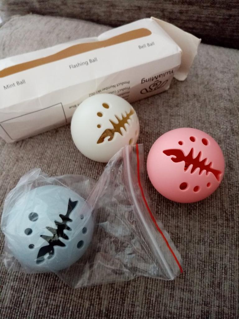 The balls are really really great and when I shook the package a bit to guess what was in there, my kitties heard the little bells and threw themselves directly on the package, so they were confiscated and I had to fight the packages, thank you very much recommended