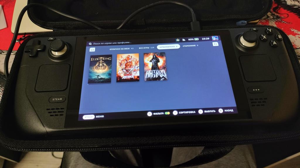 👍 Pros: – High levels of game optimization. – Full access to your personal Steam library via the console. – Can be connected to an external monitor. – You can pause the Steam OS, at any time, without having to pause the game or save. – Endless possibilities for control customization. – A large 7” IPS 1280x800 screen. 🤔 Cons: – Due to a powerful cooling system, the console can get noisy when playing resource-heavy, modern games.