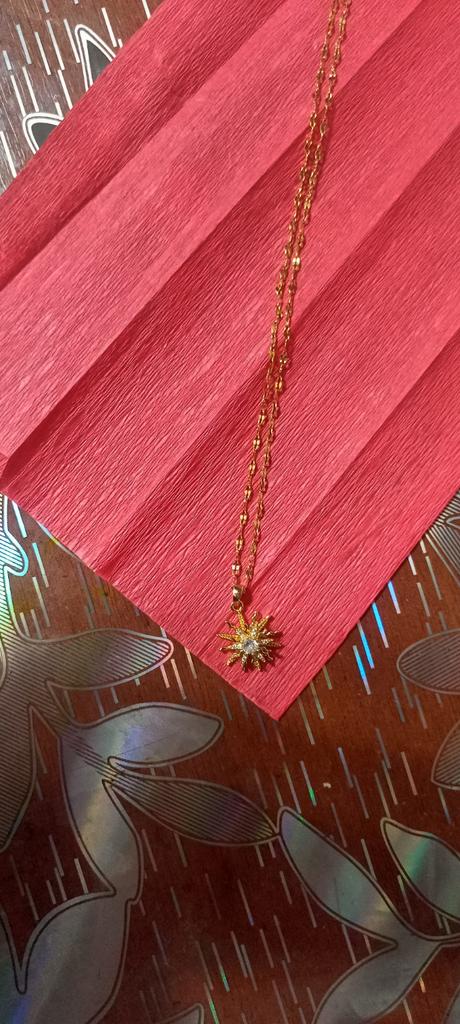 very beautiful pendant and chain. The sun on the pendant is spinning a little bit smaller.