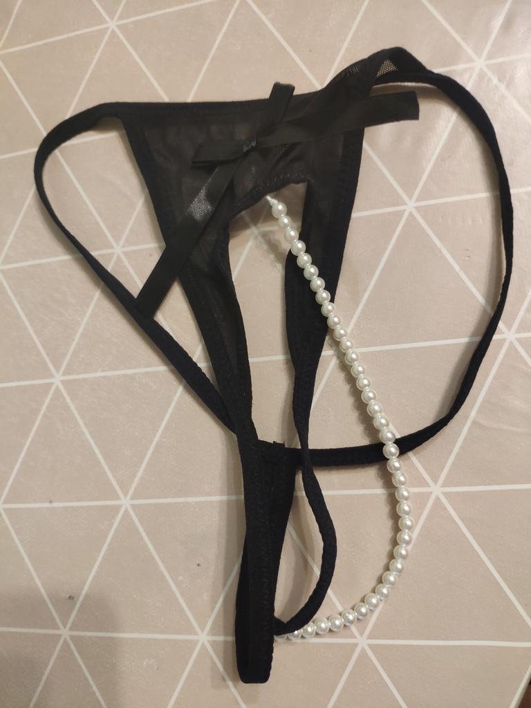 Women Sexy Mesh Breathable Imitation Pearl Crotchless Panties Thong Underwear