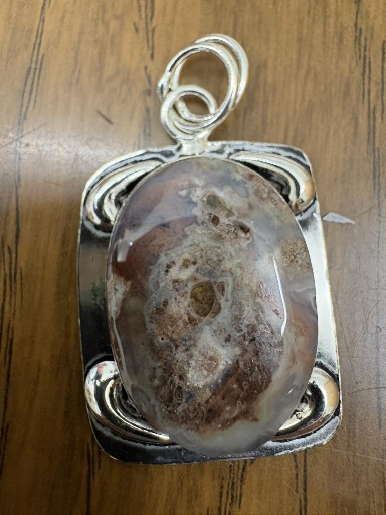 Natural Laguna Lace Agate Gemstone 925 Sterling Silver Pendant 2.36" L6c47