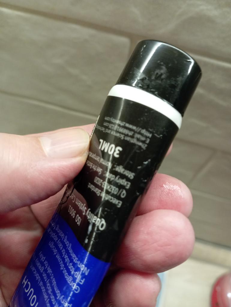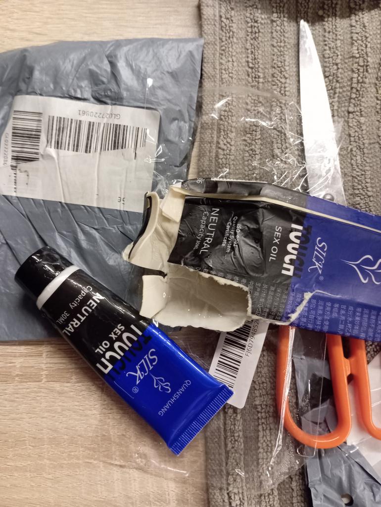Half of the tube has leaked, the entire jar is in liquid, the box is crumpled, tin.