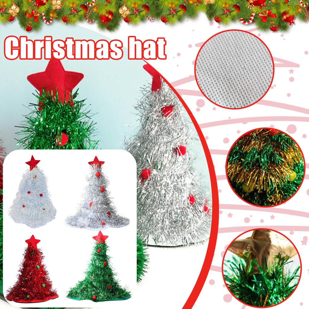 Christmas Tree Hat Non Woven Rain Silk Hat Suitable For Christmas Party Home Festival Clothing Props Shiny Christmas Hat