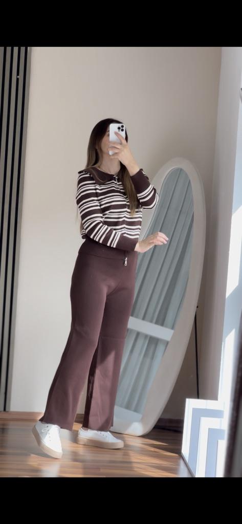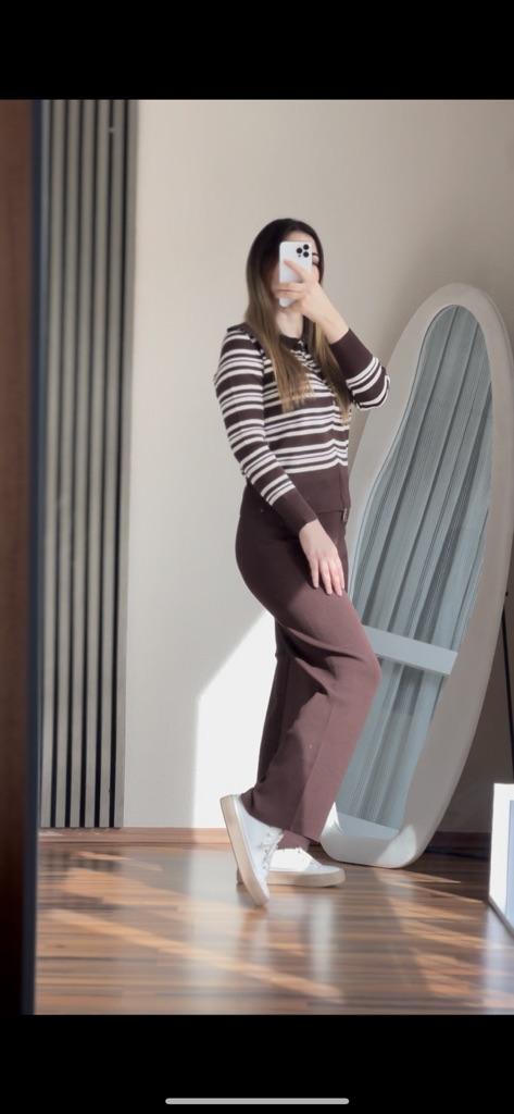 Women's New Fashion Autumn Striped Sweater Wide Leg Pants Knit Two Piece Set
