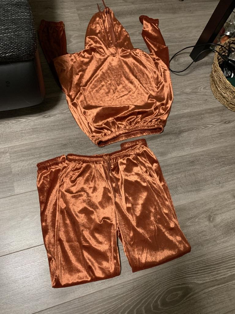Women's Solid Color Gold Velvet Hooded Long-Sleeve Sports Casual Suit - Autumn/Winter 2021
